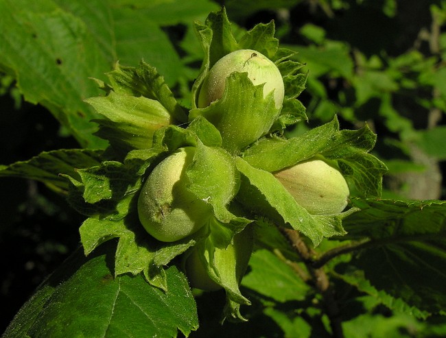 Лещина крупная, или ломбардский орех (фундук), является прародителем садовых крупноплодных форм.